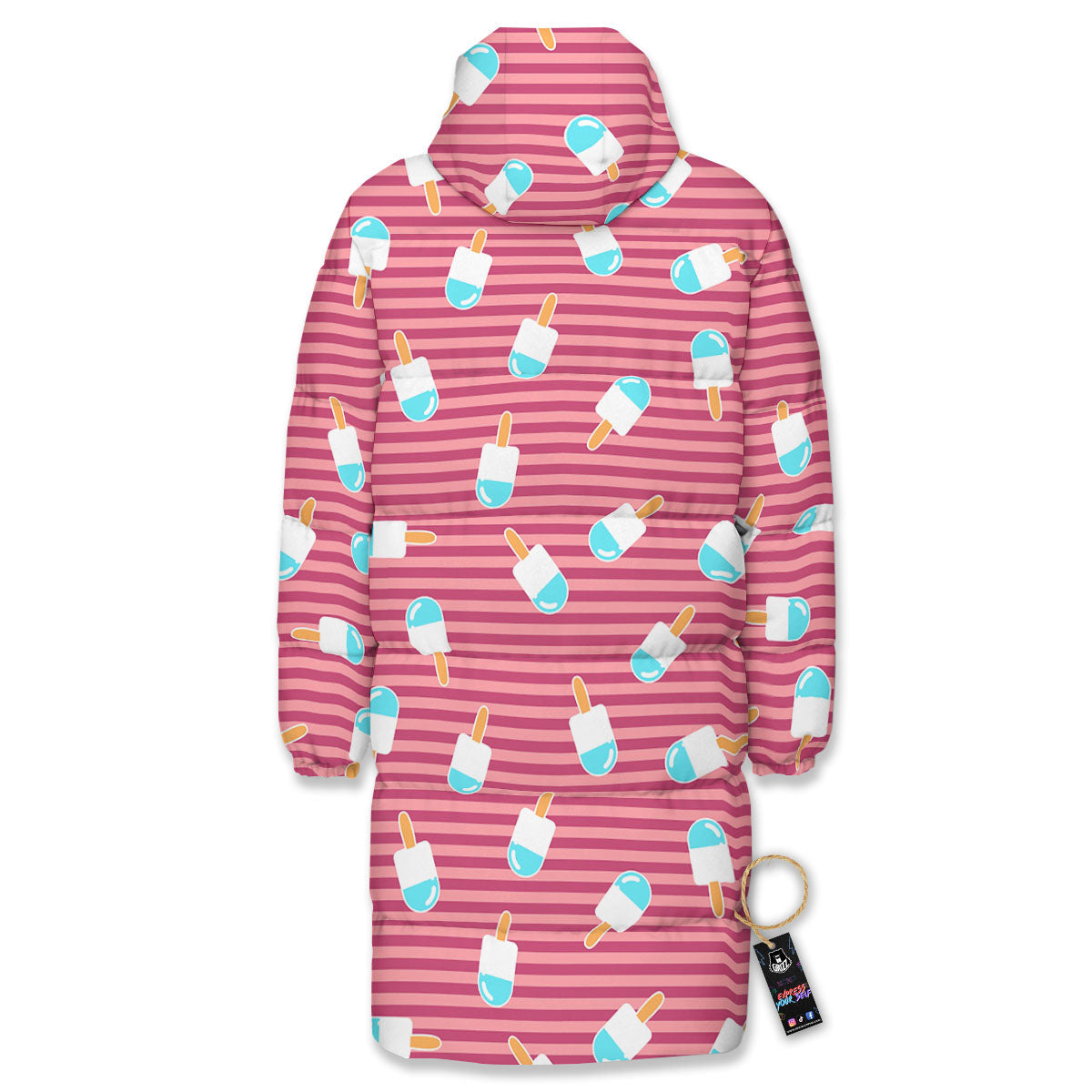 Ice Cream Pink Striped Print Pattern Long Down Jacket