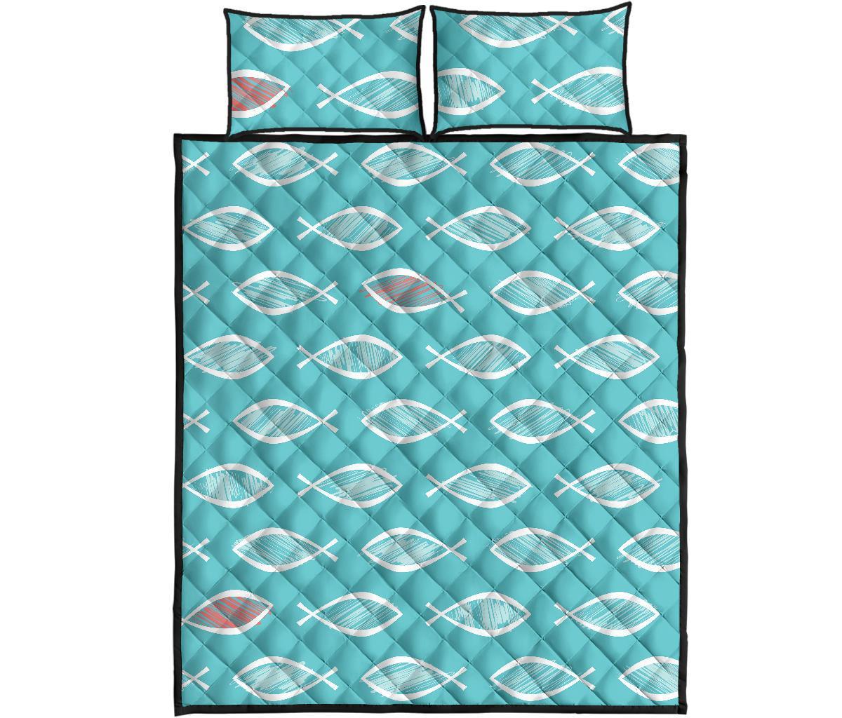 Ichthys Christian Pattern Print Bed Set Quilt