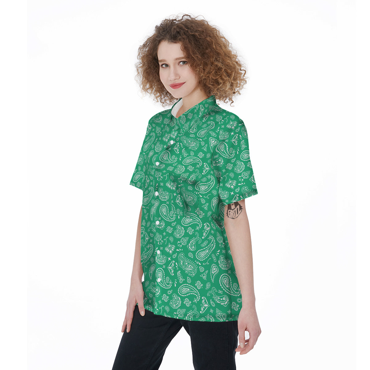 Jade Paisley Bandana Print Women's Short Sleeve Shirts
