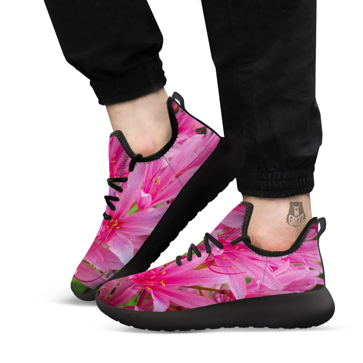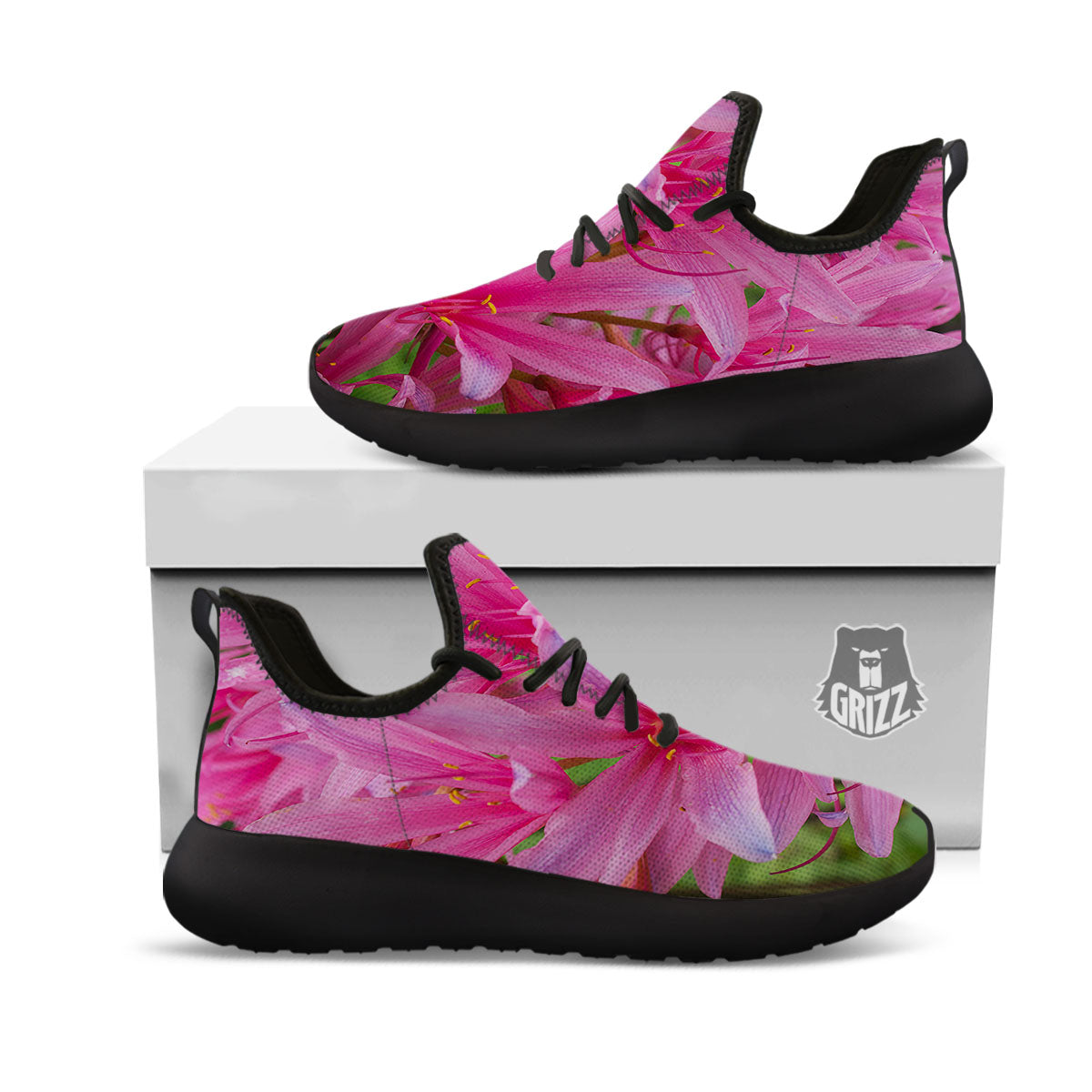 Japanese Amaryllis Purple And Pink Print Black Athletic Shoes
