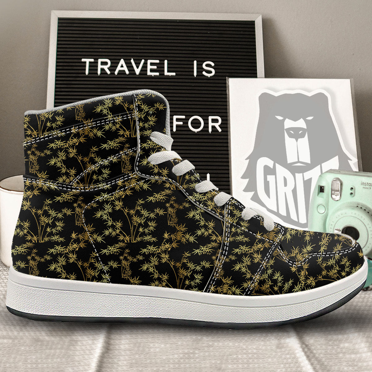 Japanese Bamboo Black And Gold Print Pattern High Top Sneakers