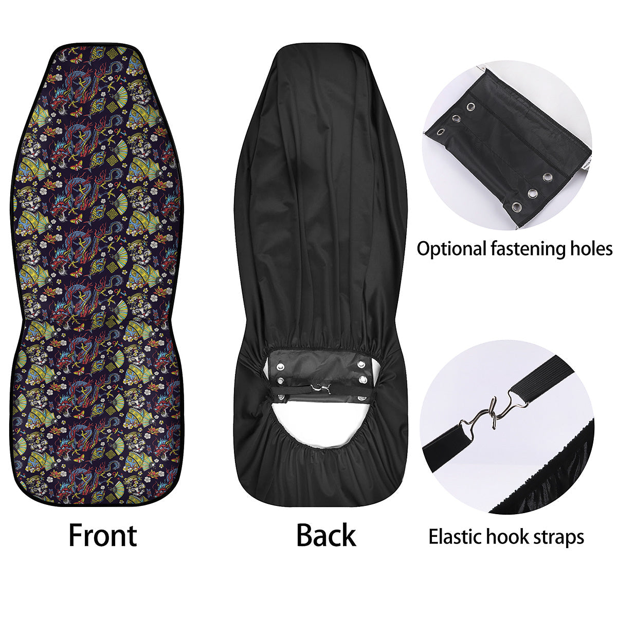 Japanese Dragons And Cat Tattoo Print Pattern Car Seat Covers