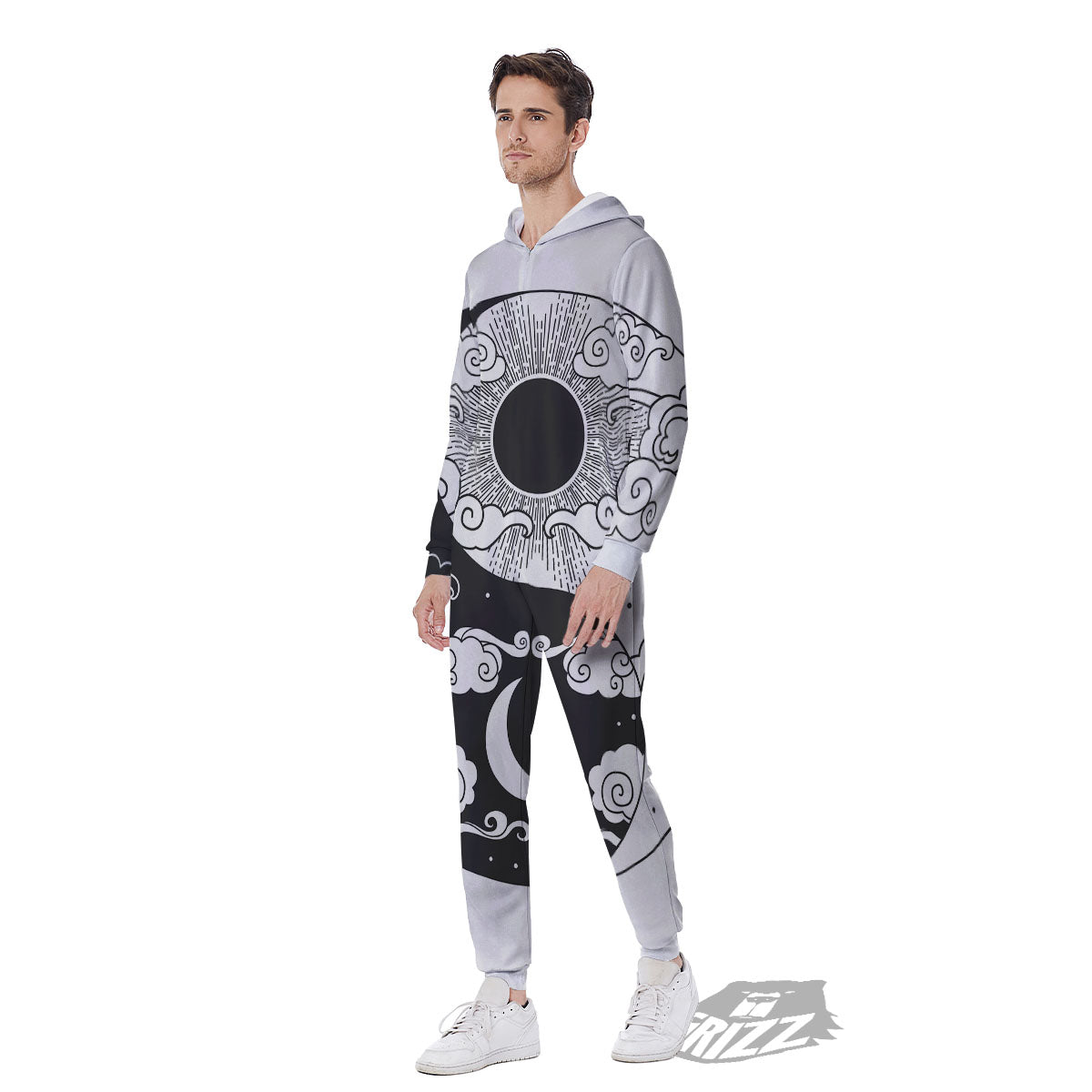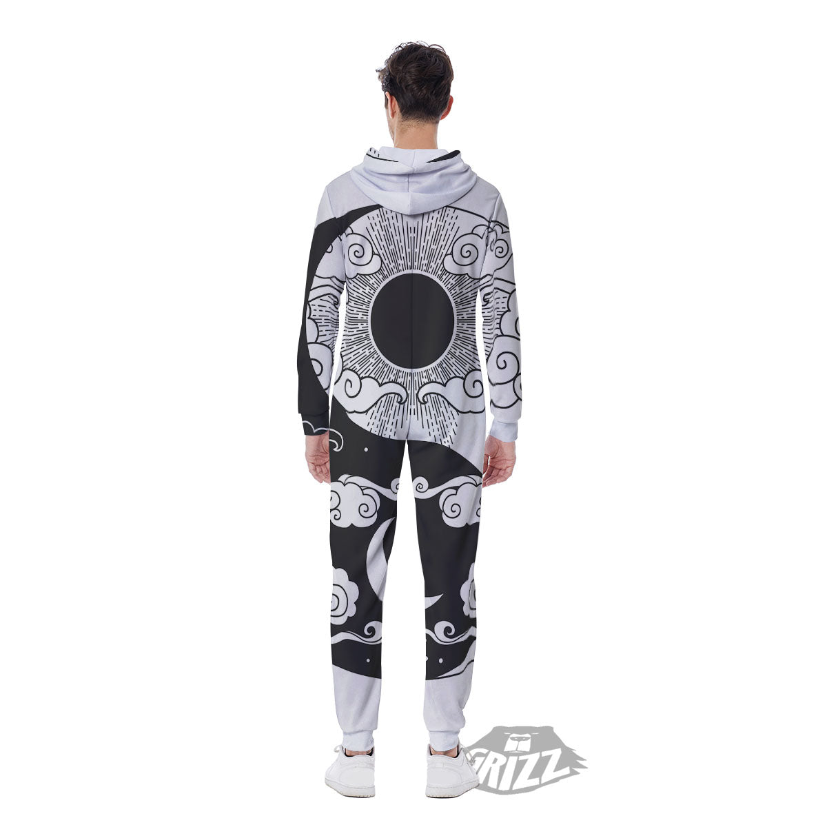 Japanese Yin Yang White And Black Print Men's Jumpsuit