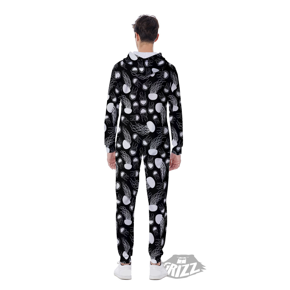 Jellyfish White And Black Print Pattern Men's Jumpsuit