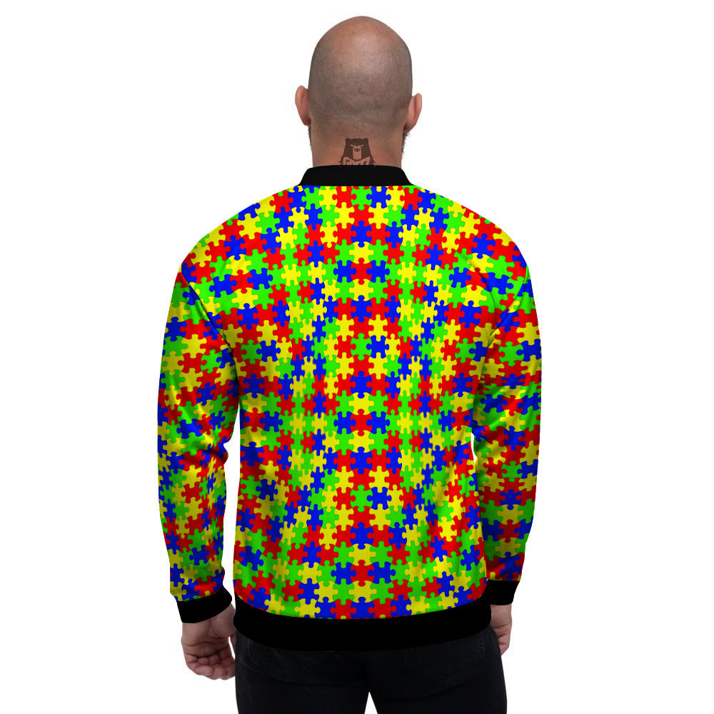 Jigsaw Autism Awareness Print Pattern Men's Bomber Jacket