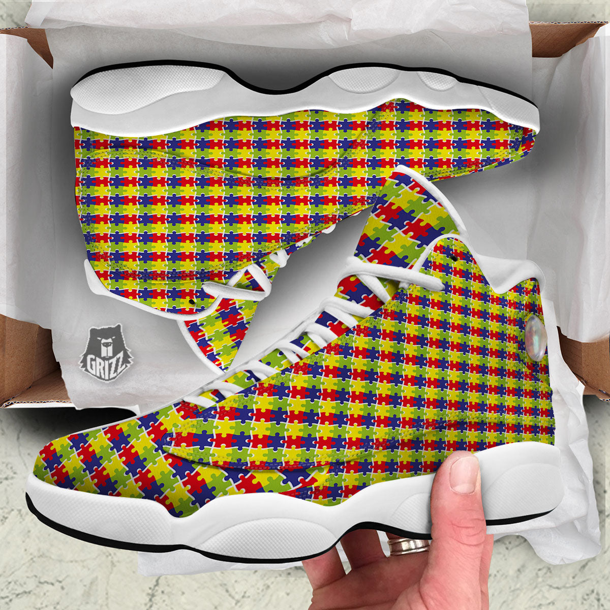 Jigsaw Autism Awareness Print White Basketball Shoes