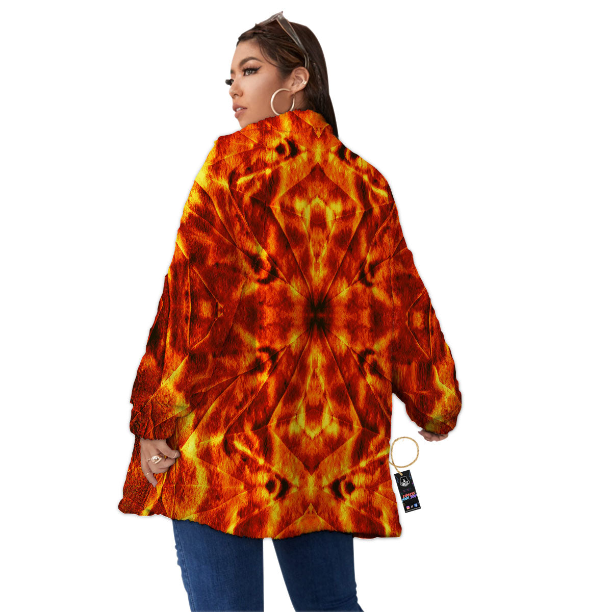 Kaleidoscope Flame Print Women's Sherpa Jacket