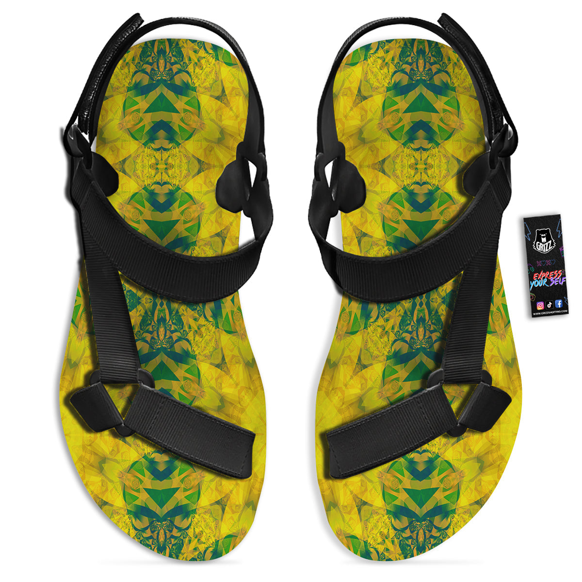 Looking for unique toe sandals? Check out our Kaleidoscope Flower Yellow Print Pattern Black Open Toe Sandals at Grizzshopping. Our toe sandals are handcrafted to the highest quality standards that custom made for you