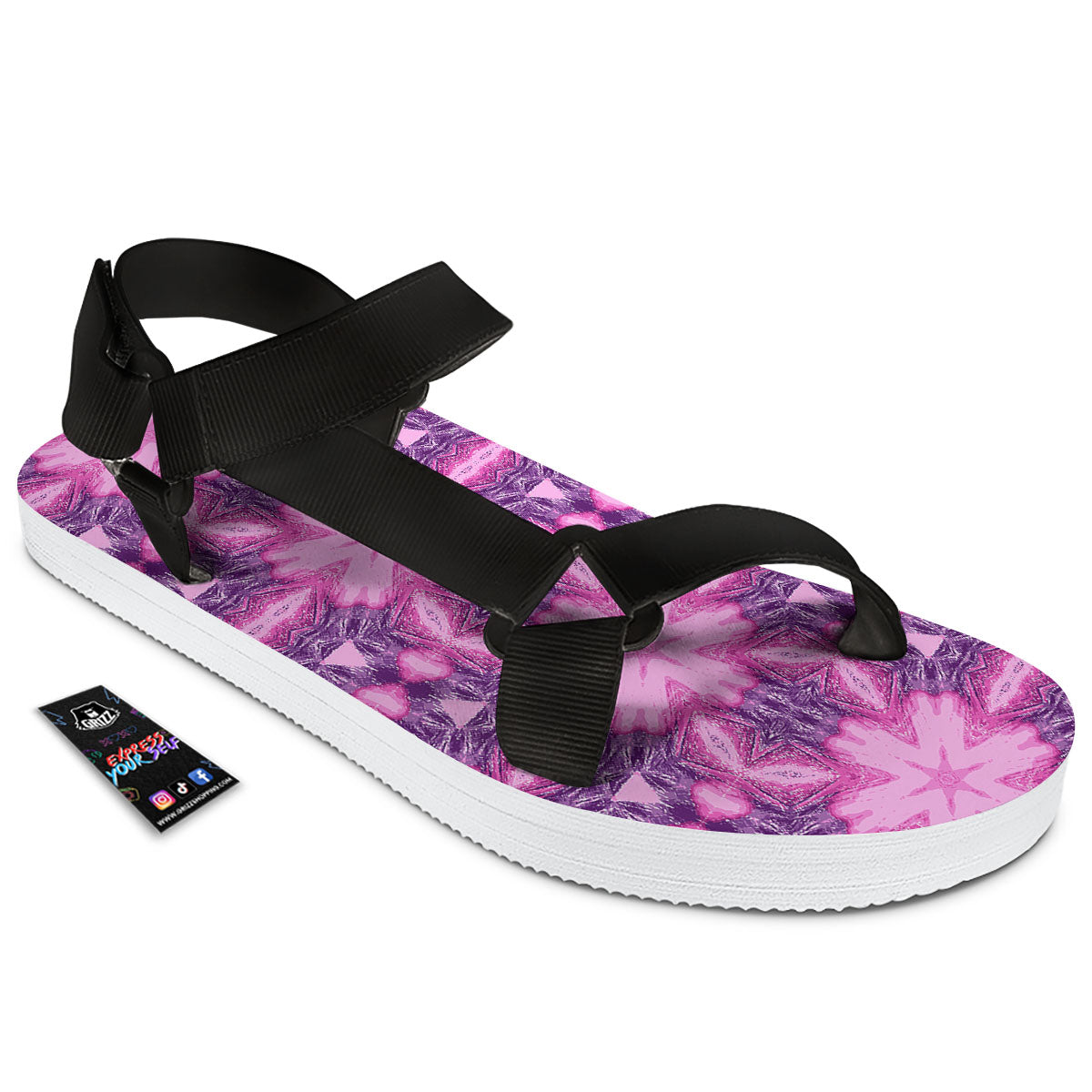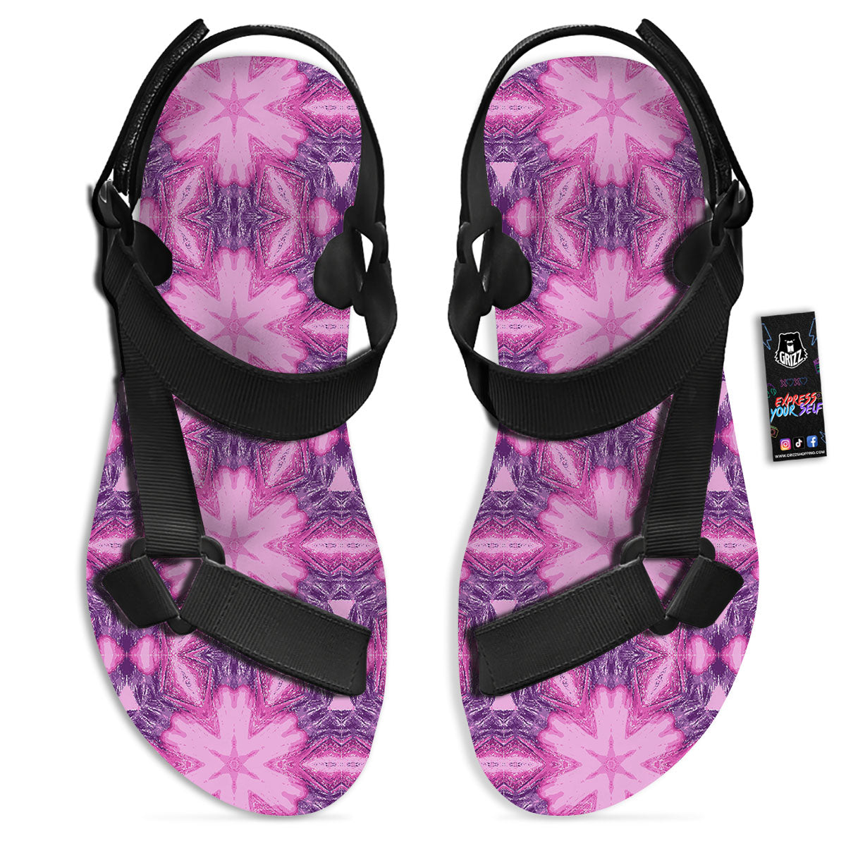 Kaleidoscope Pink Print Pattern Black Open Toe Sandals