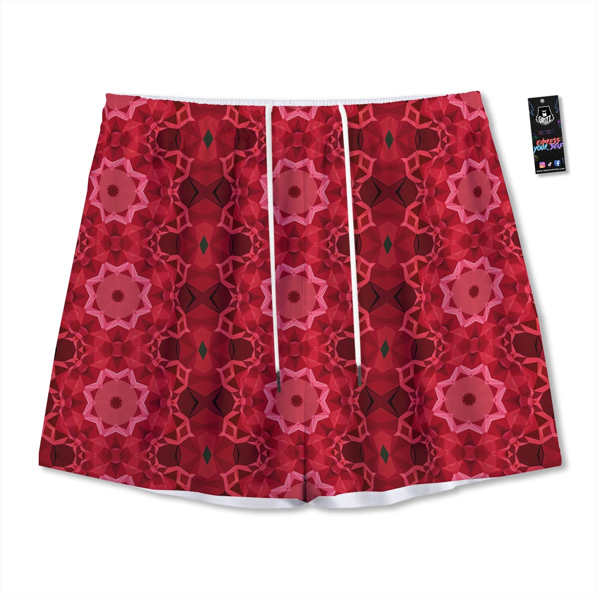 Kaleidoscope Red Print Pattern Mesh Shorts