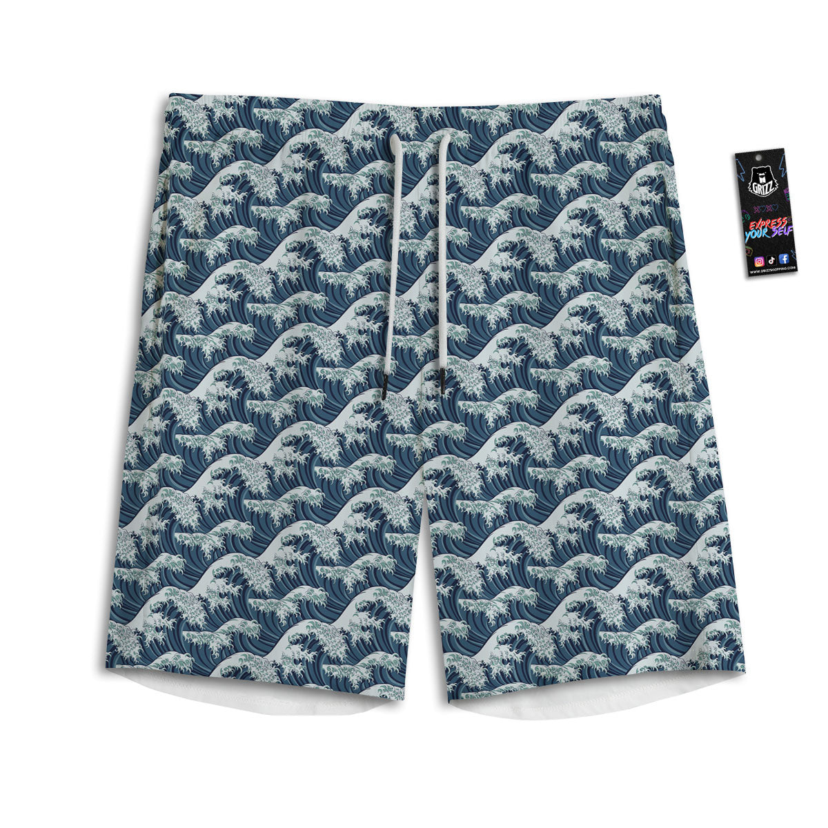 Kanagawa Wave Japanese Print Pattern Men's Athletic Shorts