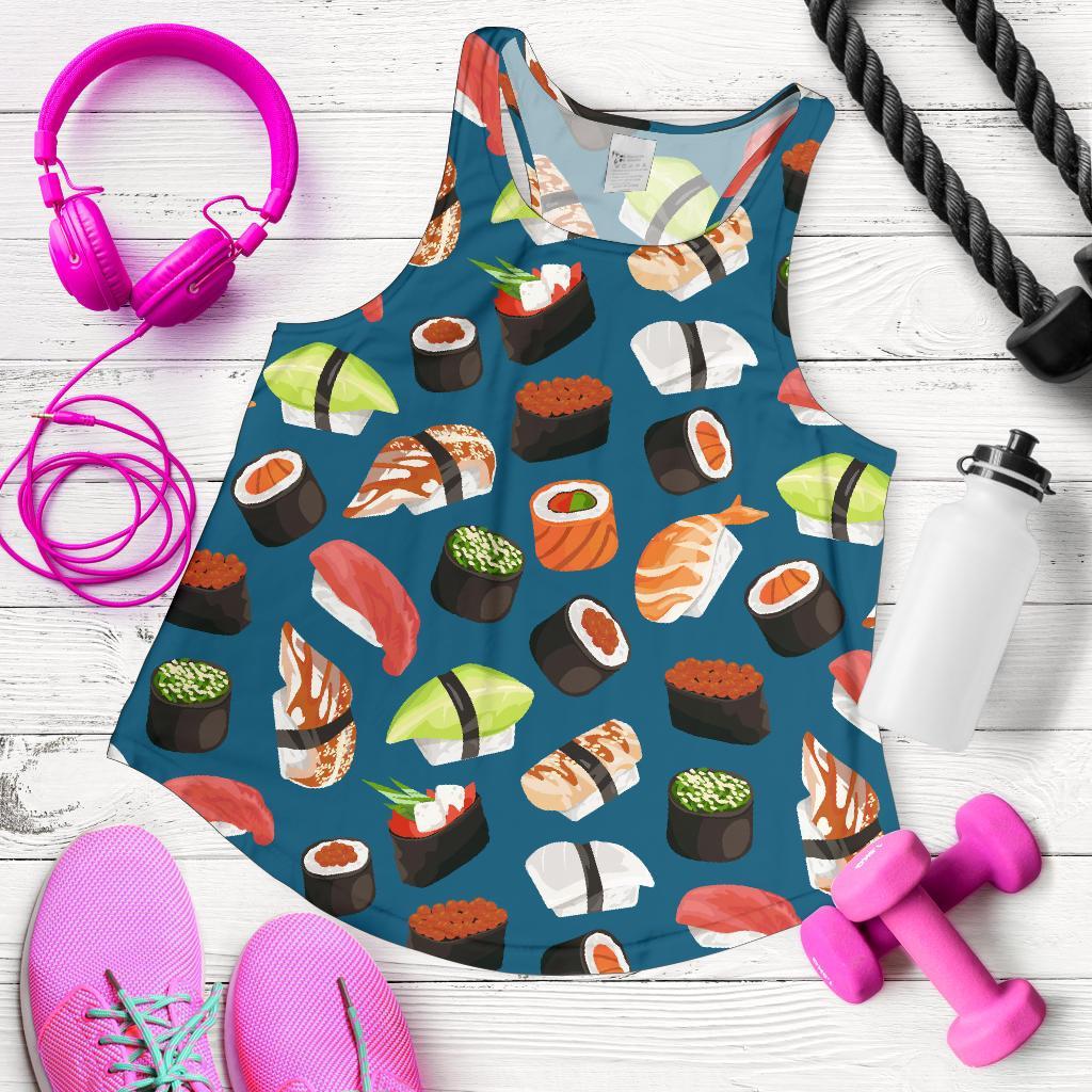 Kawaii Sushi Print Pattern Women's Racerback Tank Tops