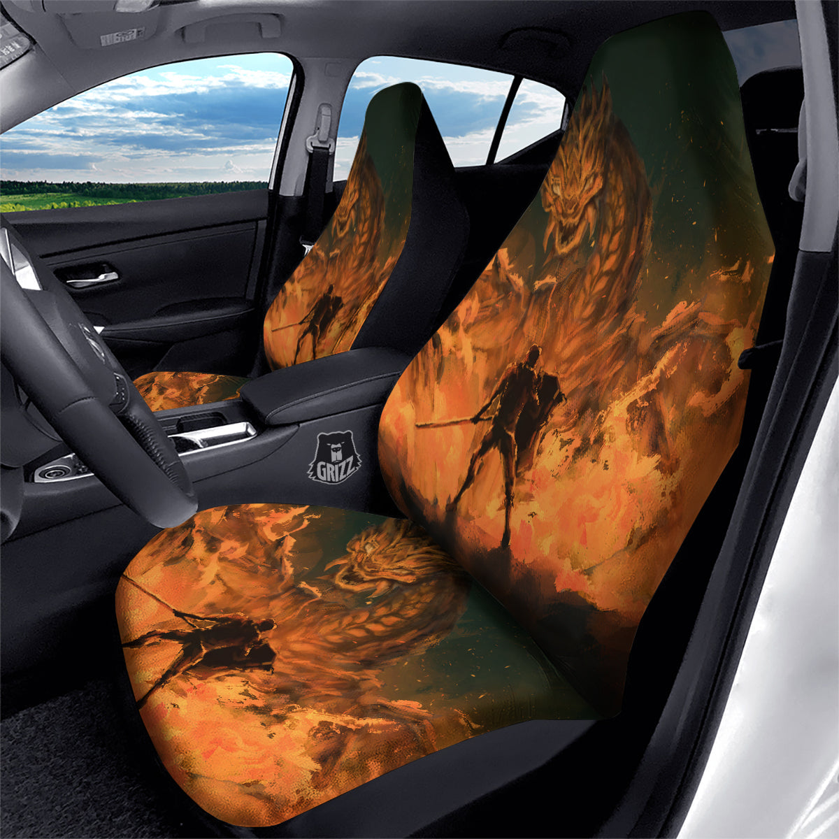 Looking for a unique car seat cover? Check out our Knight Fight With Dragon Print Car Seat Covers at Grizzshopping. Our car seat cover are handcrafted to the highest quality standards that custom made for you Constructed with high quality polyester micro-fiber fabric for maximum durability and comfort.