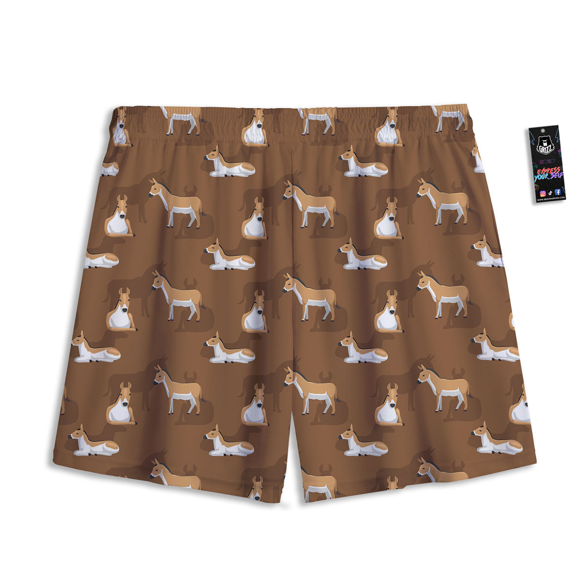 Kulan Donkey Cartoon Print Pattern Mesh Shorts