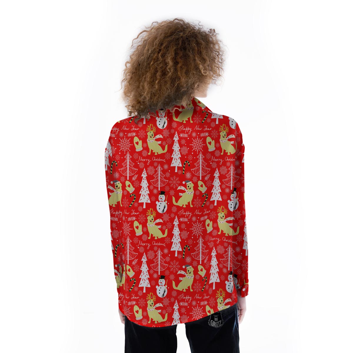 Labrador Retriever Snowman Print Pattern Women's Long Sleeve Shirts