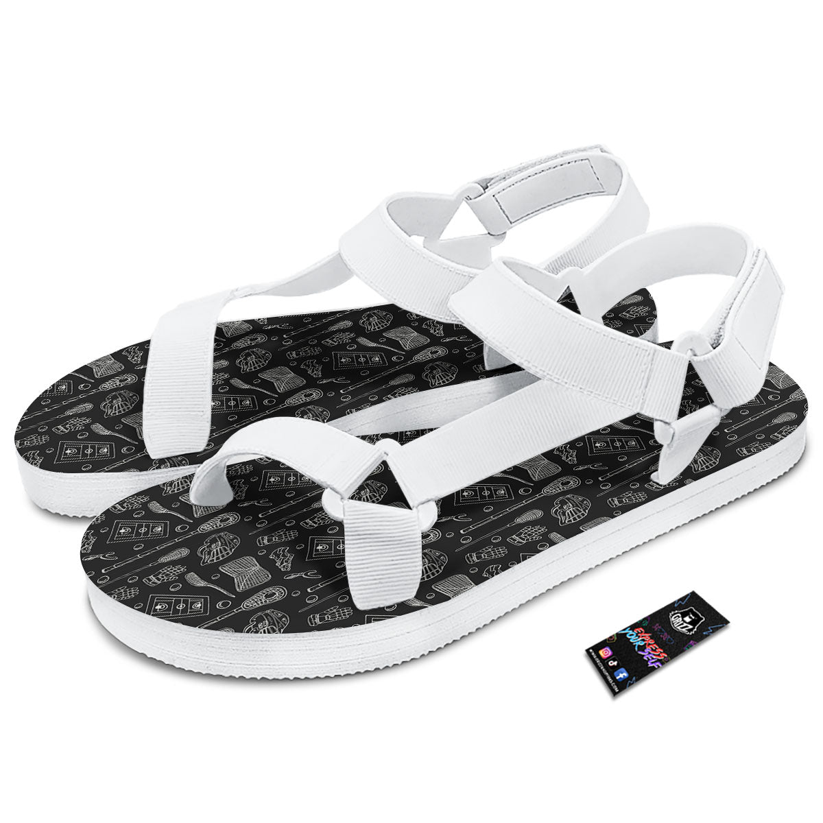 Lacrosse Doodle Print Pattern White Open Toe Sandals