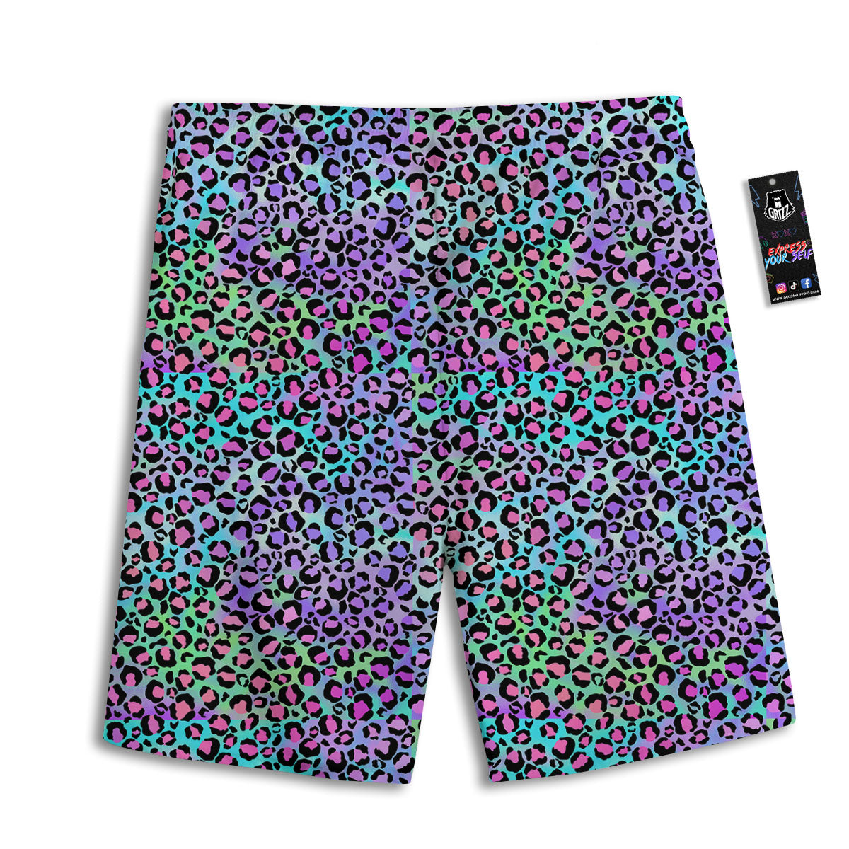 Leopard Rainbow And Purple Print Pattern Men's Athletic Shorts