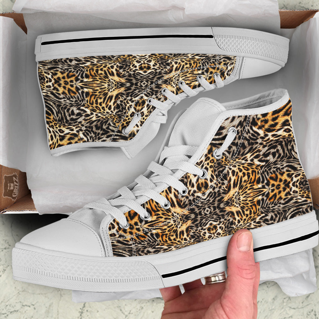 Leopard Skin Texture Print Pattern White High Top Shoes