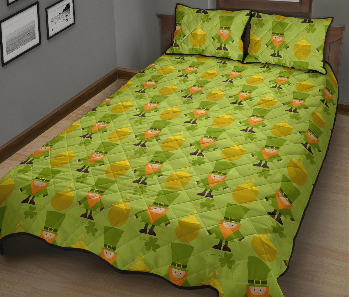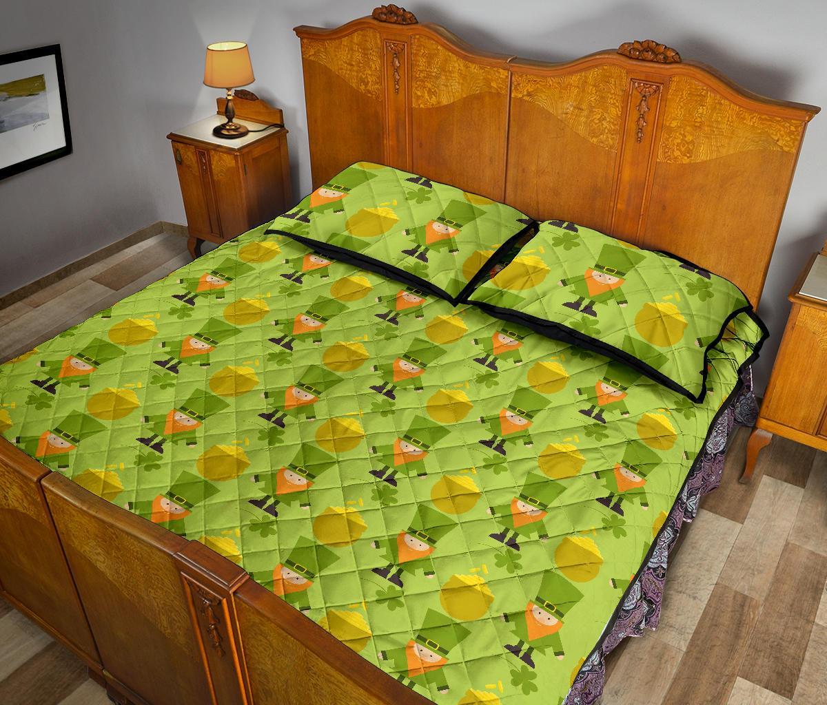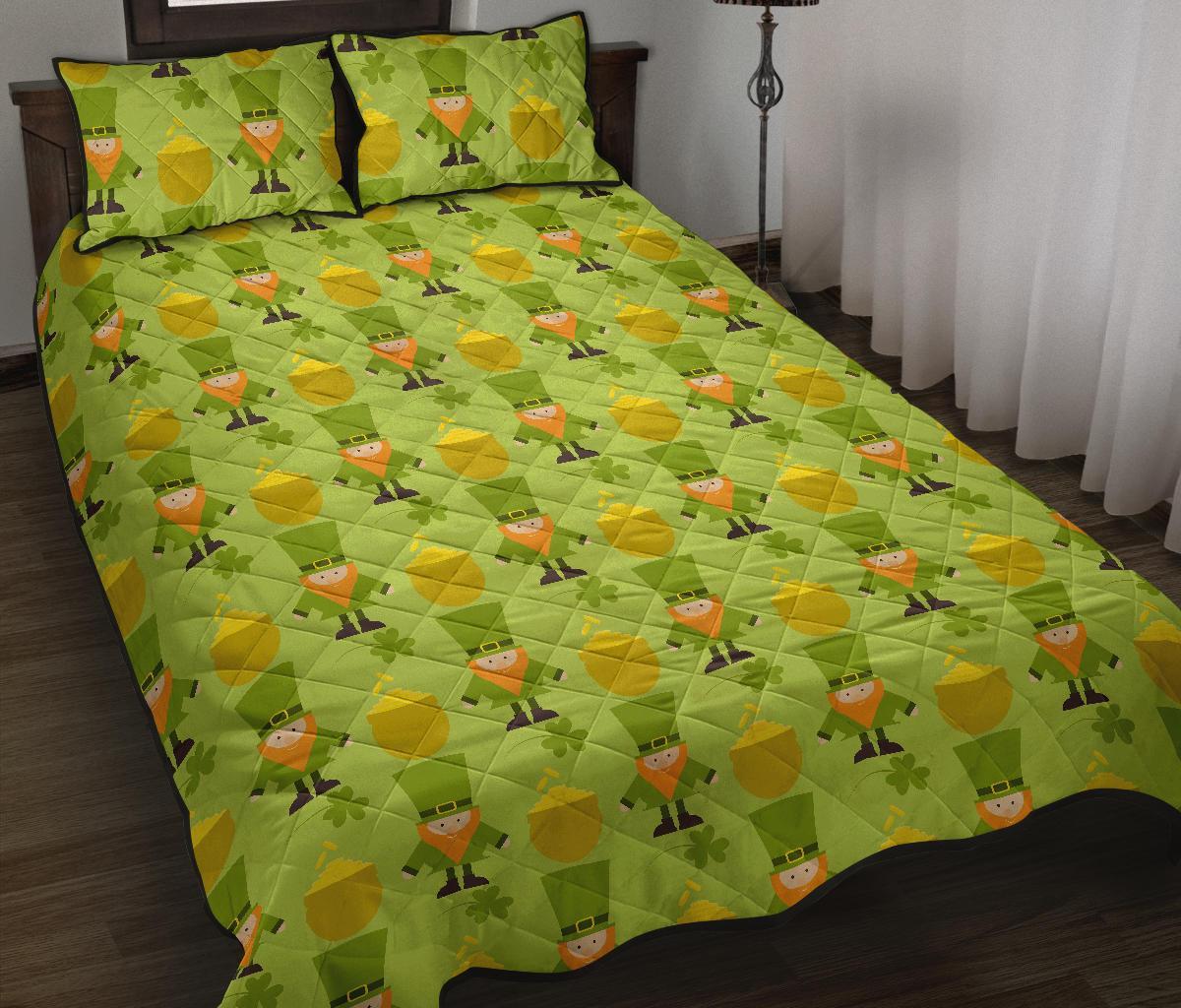 Leprechaun St Patrick's Day Print Pattern Bed Set Quilt