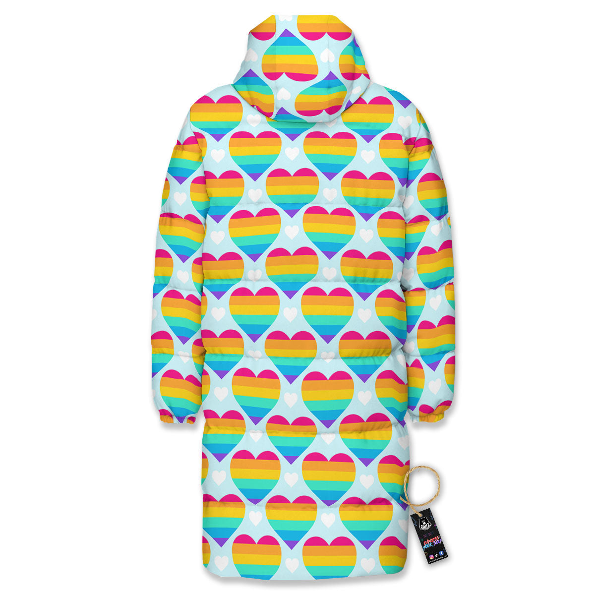 LGBT Heart Rainbow Print Pattern Long Down Jacket