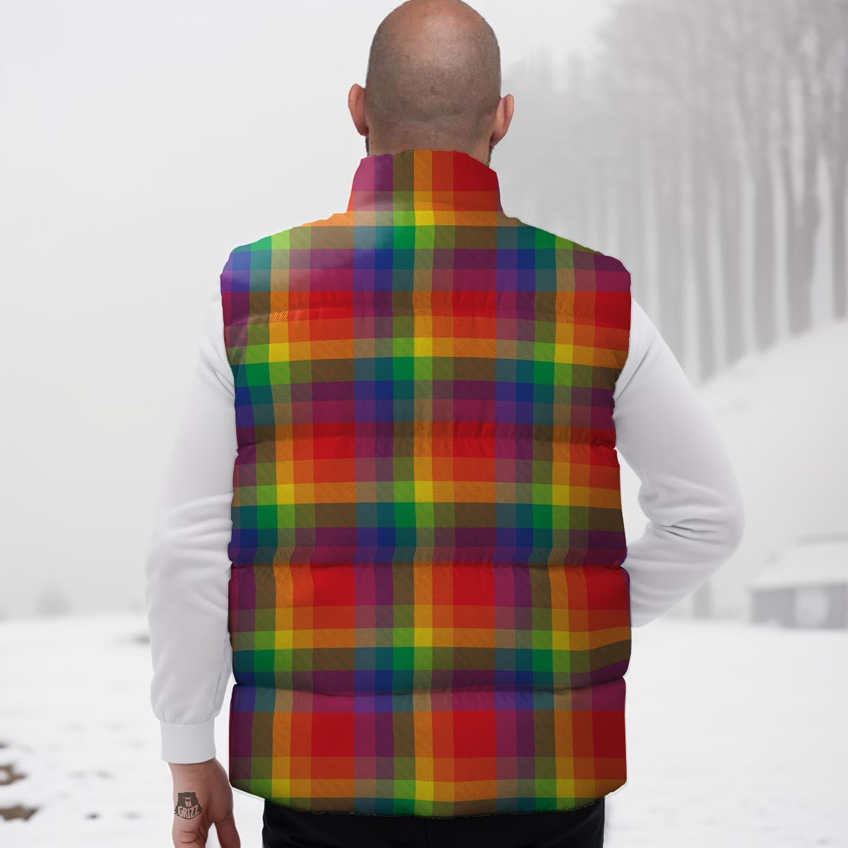 LGBT Plaid Rainbow Print Pattern Down Vest