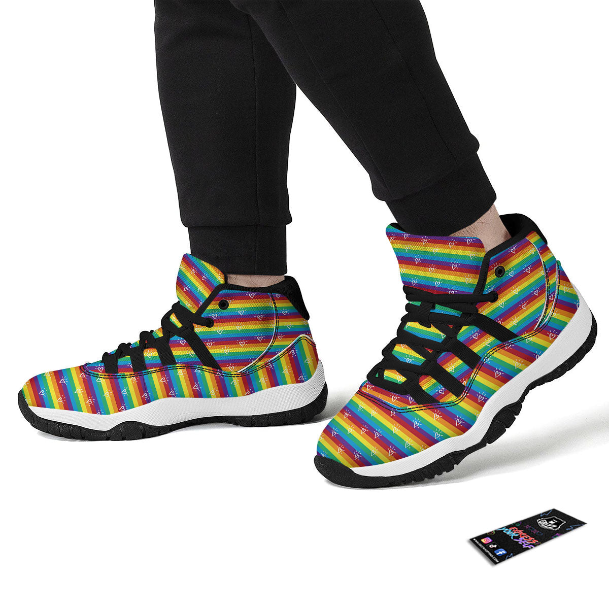 LGBT Stripes Abstract Rainbow Print Black Bball Shoes