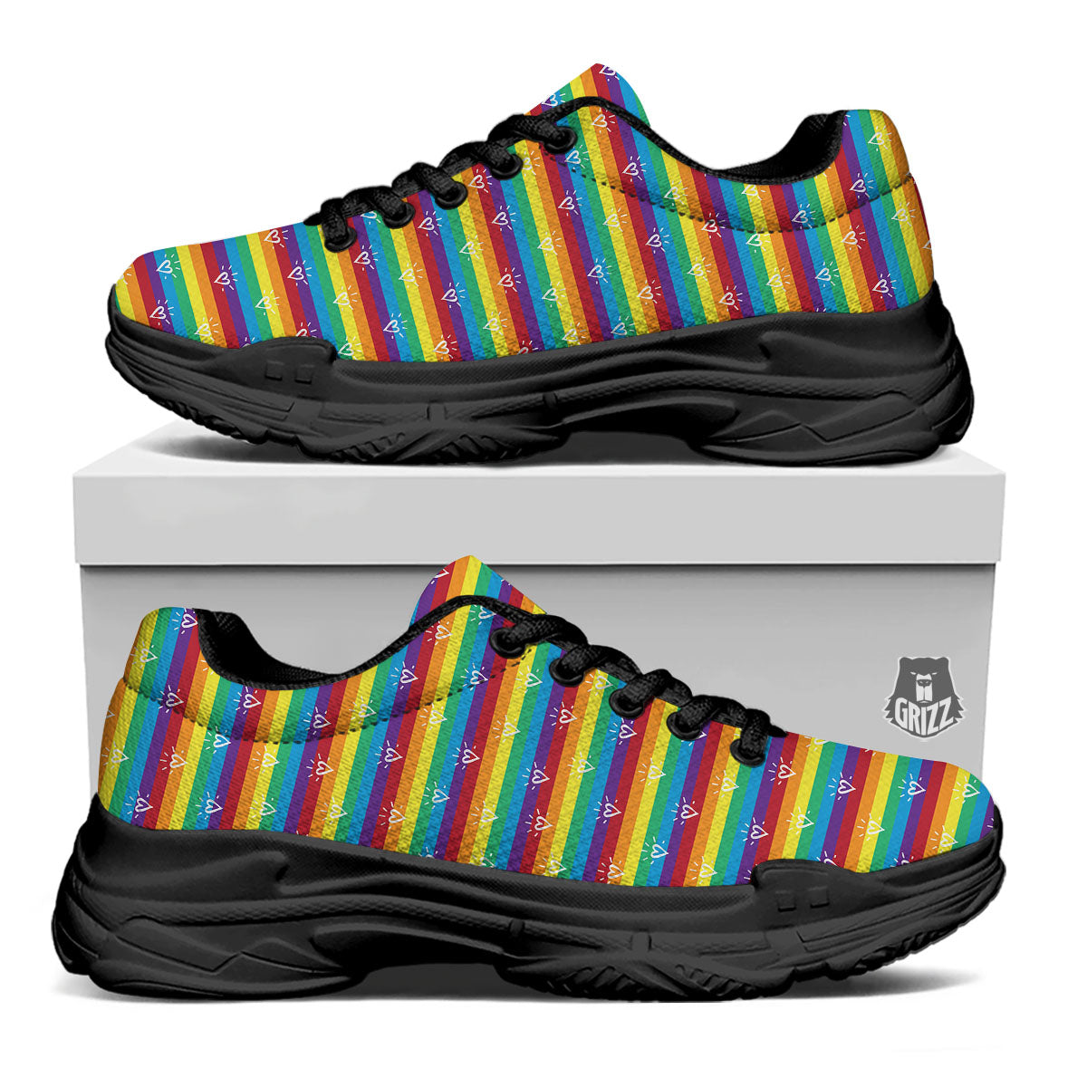 LGBT Stripes Abstract Rainbow Print Black Chunky Shoes