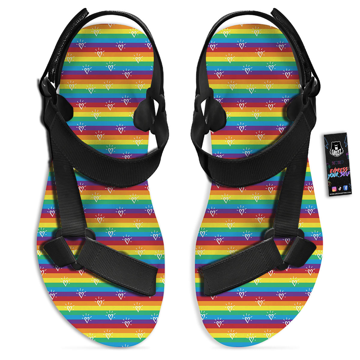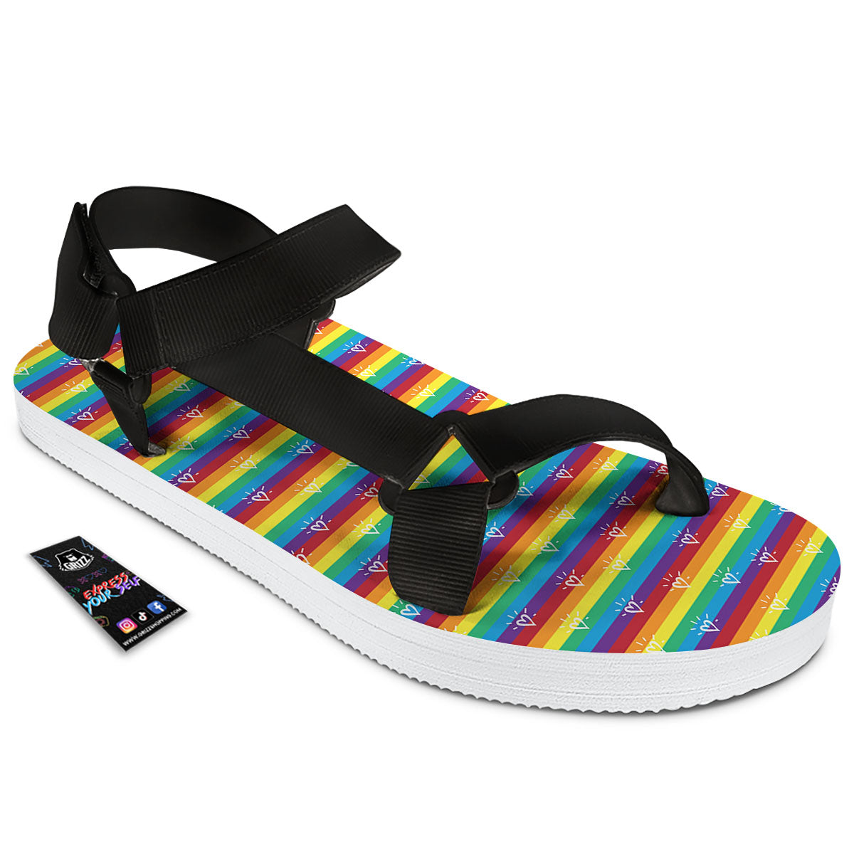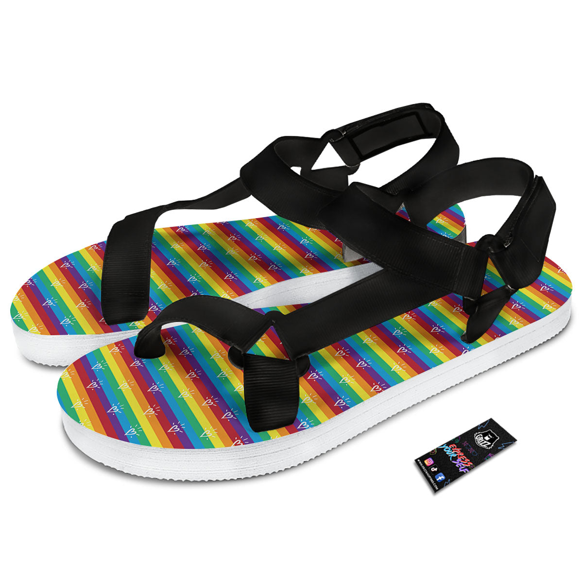 LGBT Stripes Abstract Rainbow Print Black Open Toe Sandals