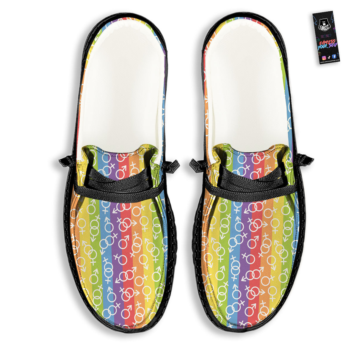 LGBT Symbols Rainbow Print Pattern Black Loafers
