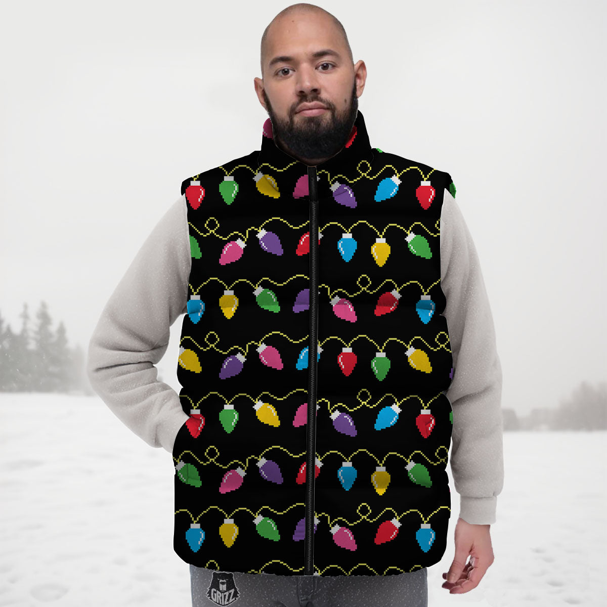 Looking for a unique Down Vest? Check out our Lights Christmas Pixel Print Pattern Down Vest at Grizzshopping. Our down vest are handcrafted to the highest quality standards that custom made for you