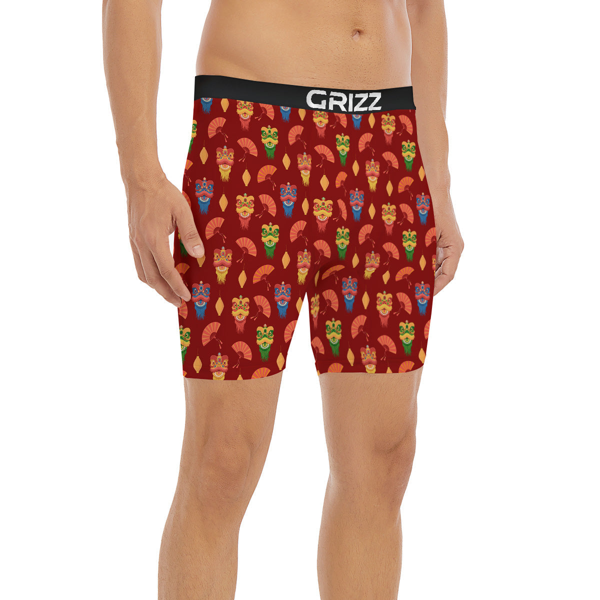Lion Dance Chinese New Years Print Pattern Boxer Briefs