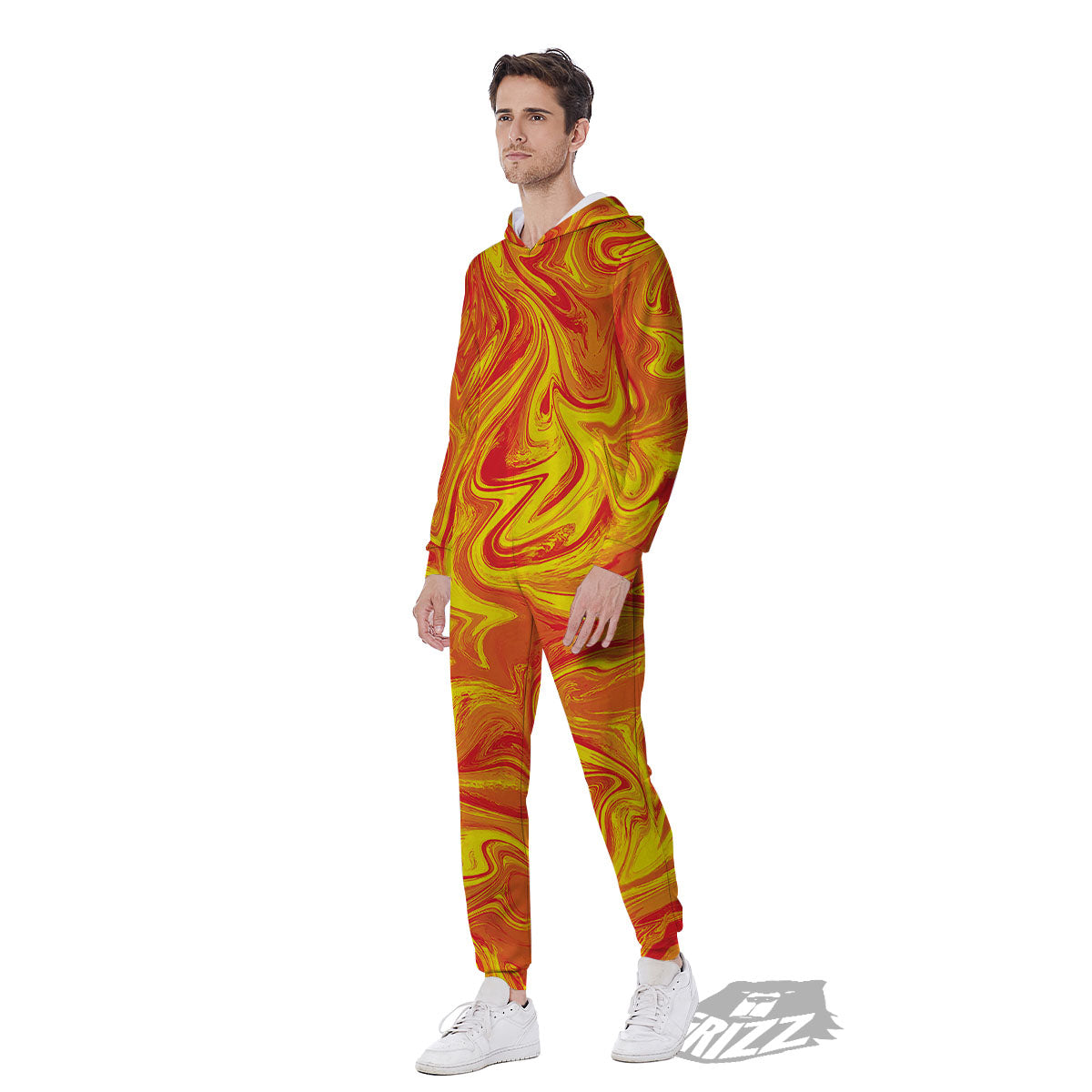 Liquid Psychedelic Trippy Orange Print Men's Jumpsuit