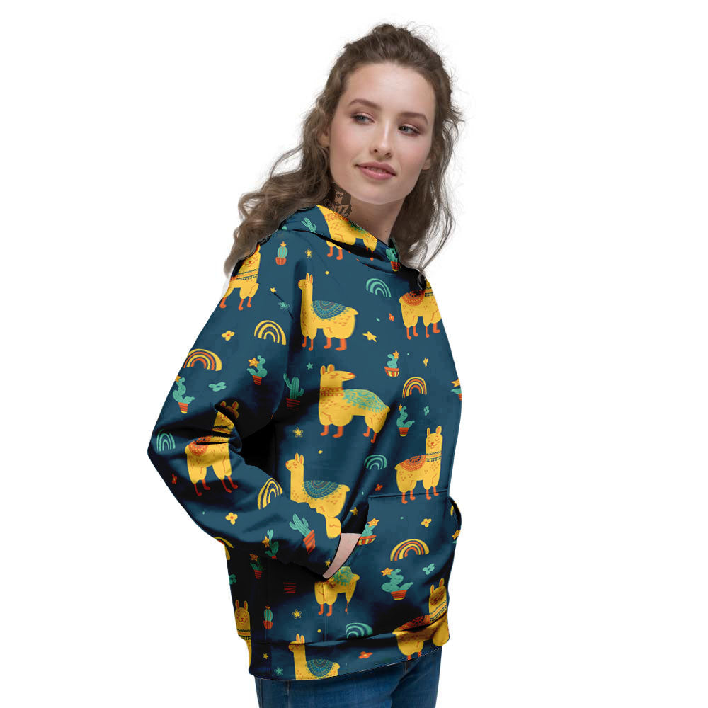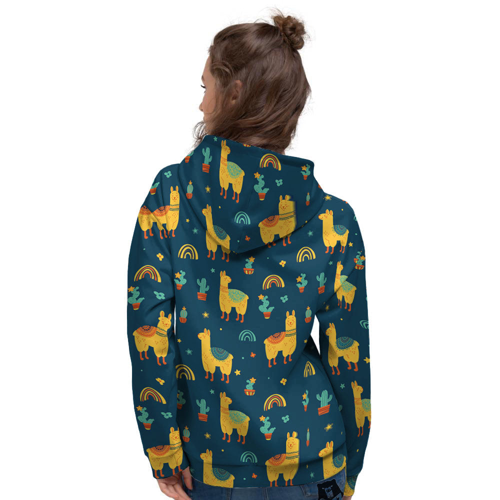 Llama And Cute Cactus Print Pattern Women's Hoodie