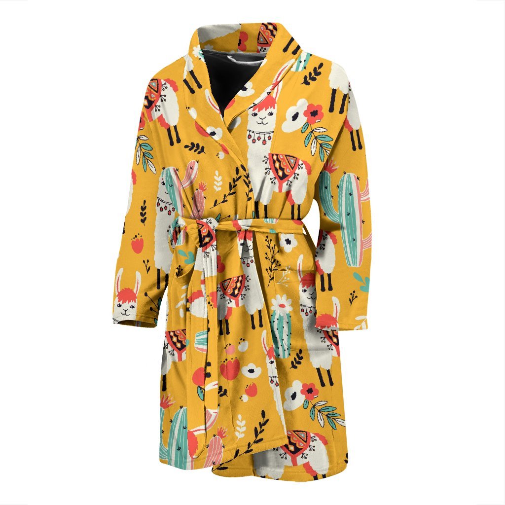 Llama Cactus Pattern Print Men Long Robe