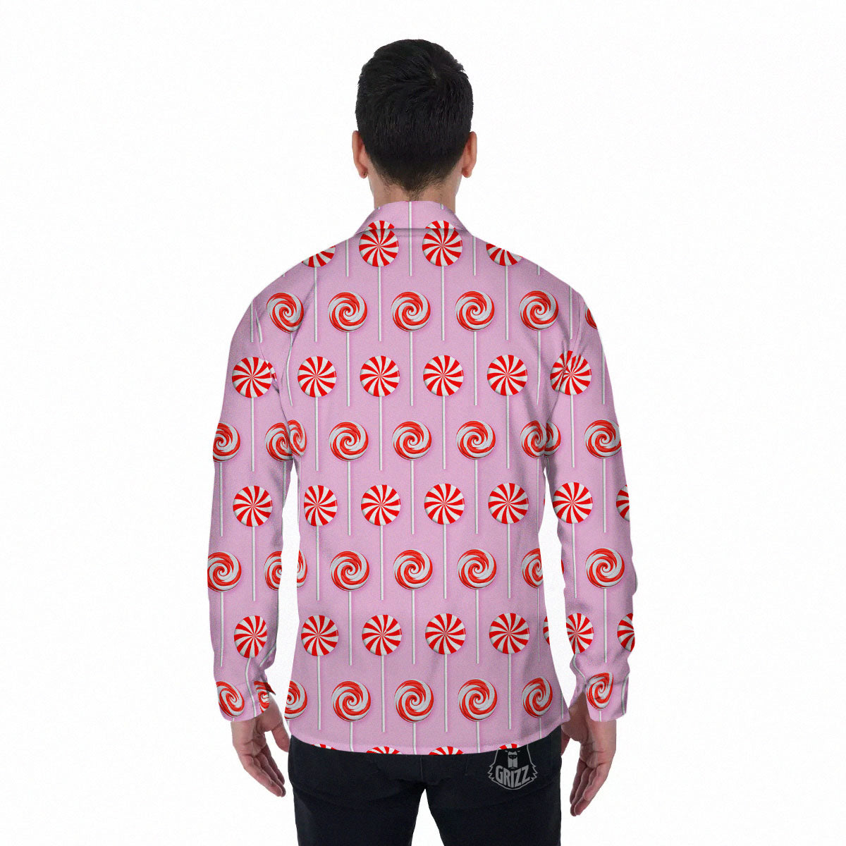 Lollipop Candy Red Print Pattern Men's Long Sleeve Shirts