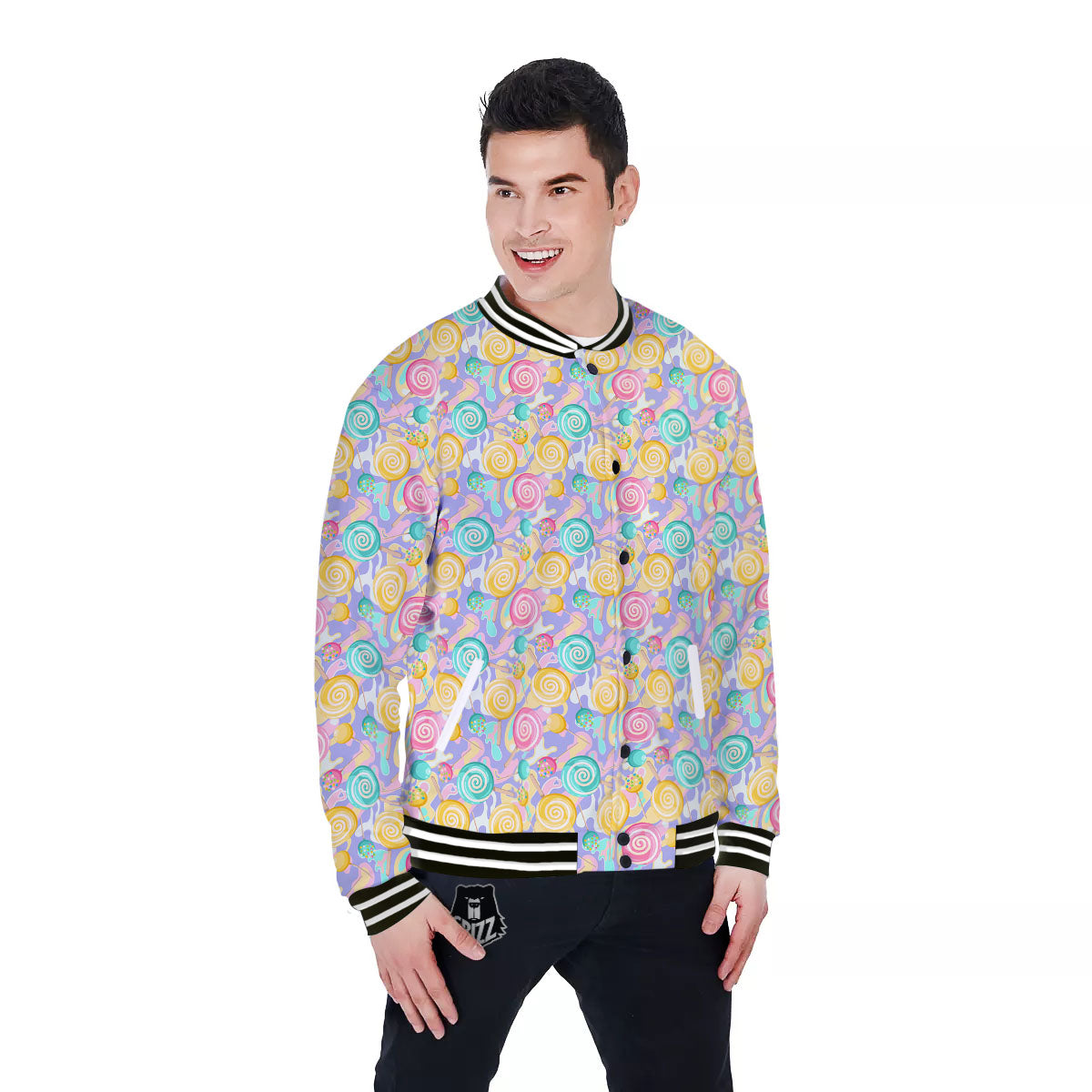 Lollipop Swirl Colorful Print Pattern Baseball Jacket