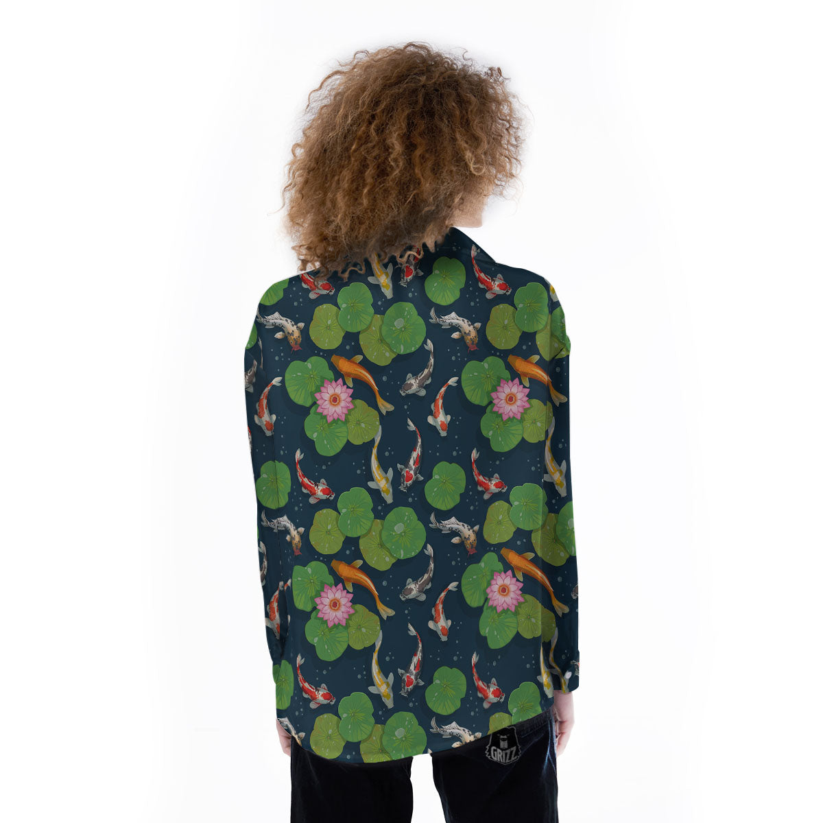 Lotus And Koi Carp Print Pattern Women's Long Sleeve Shirts