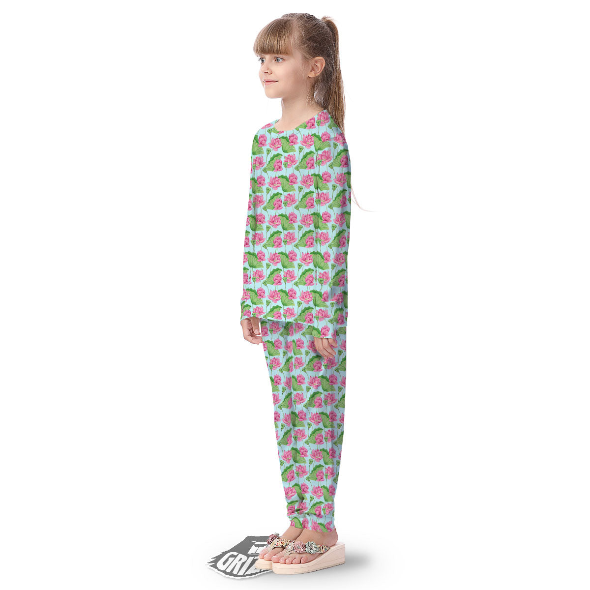 Lotus Leaf And Flower On The Water Print Pattern Kid's Pajamas