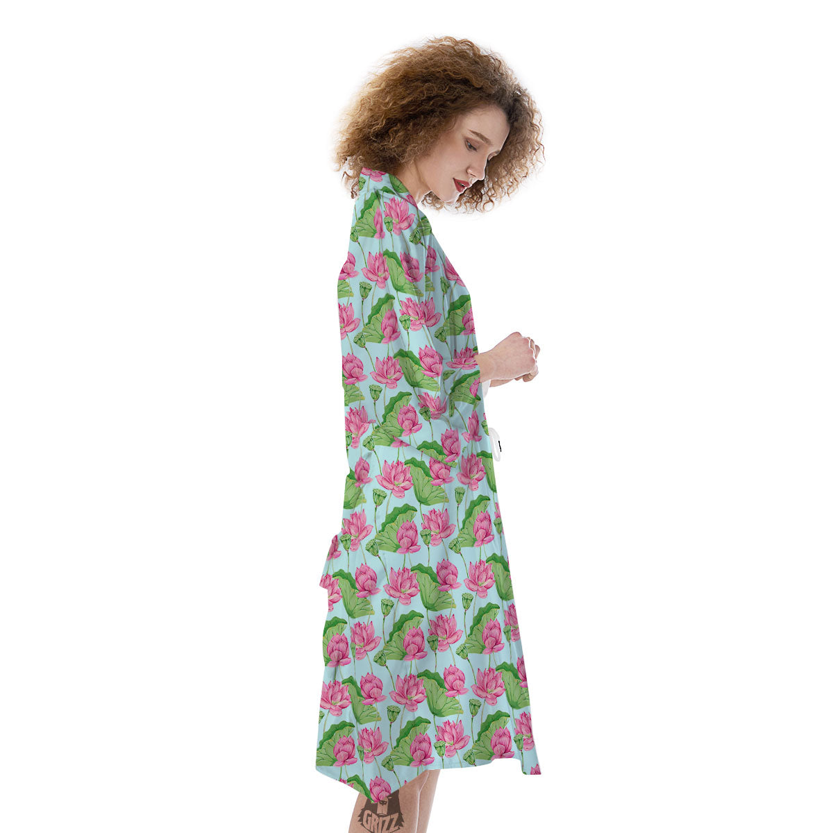 Lotus Leaf And Flower On The Water Print Pattern Kimono
