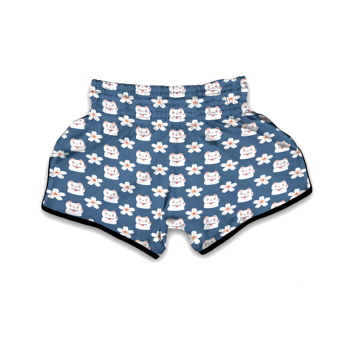 Lucky Cat And Daisy Print Pattern Muay Thai Boxing Shorts