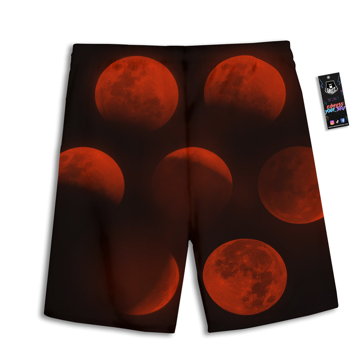 Lunar Phase Blood Moon Print Men's Athletic Shorts