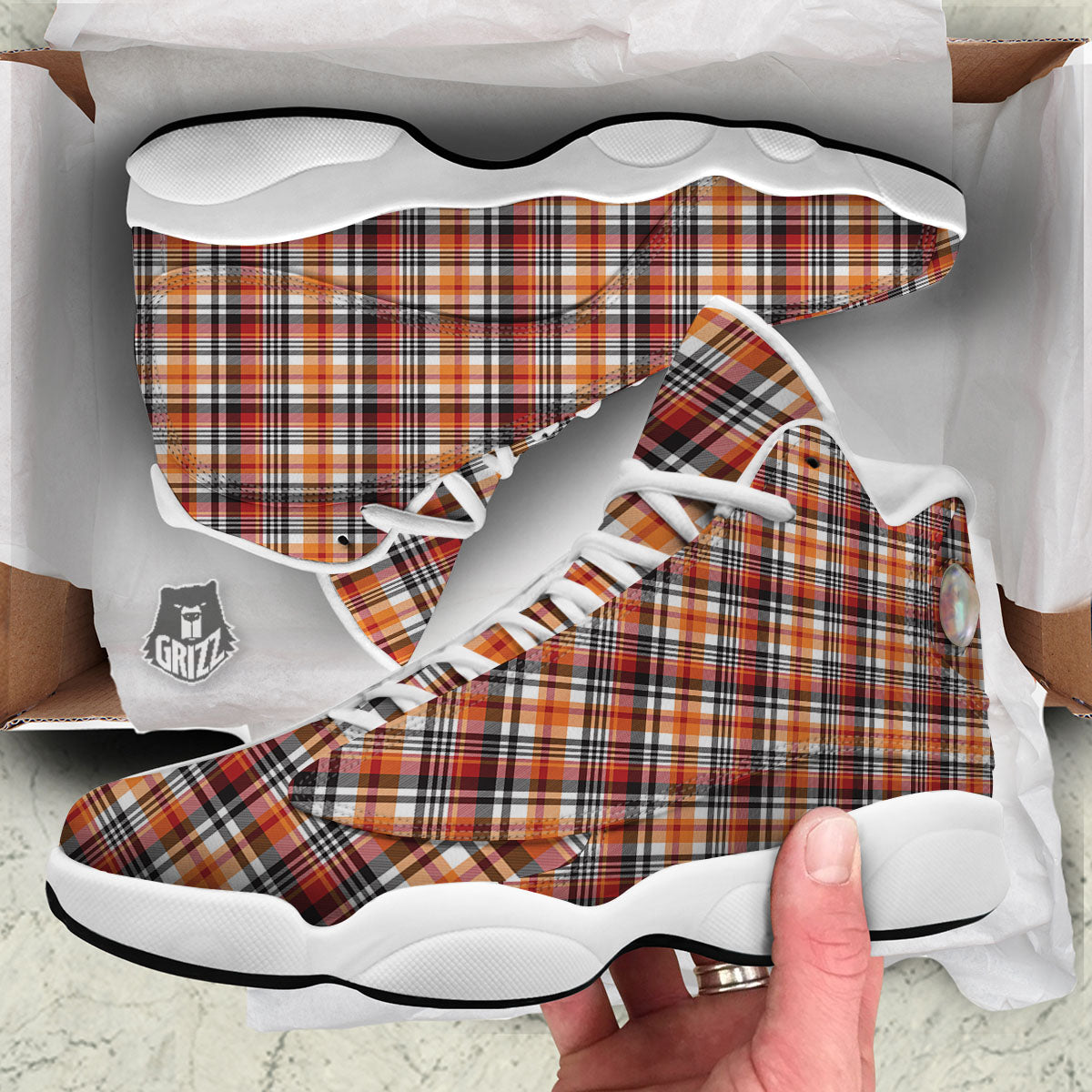 Madras Plaid Black And Orange Print Pattern White Basketball Shoes