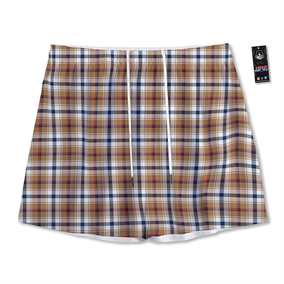 Madras Plaid Red Blue And Beige Print Mesh Shorts