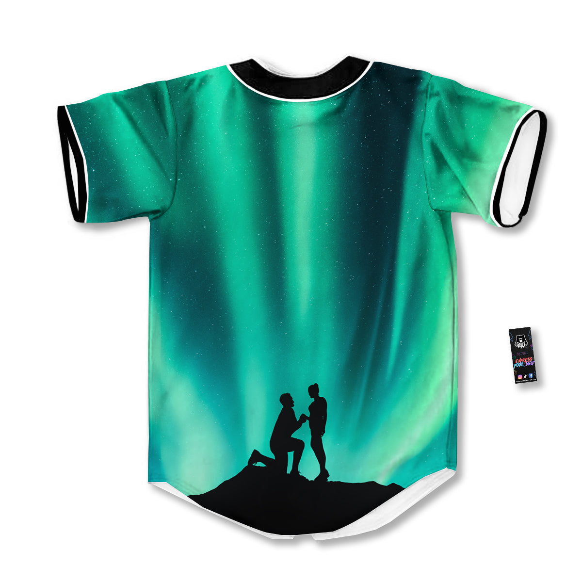 Man Making Marriage With Northern Lights Print Baseball Jersey