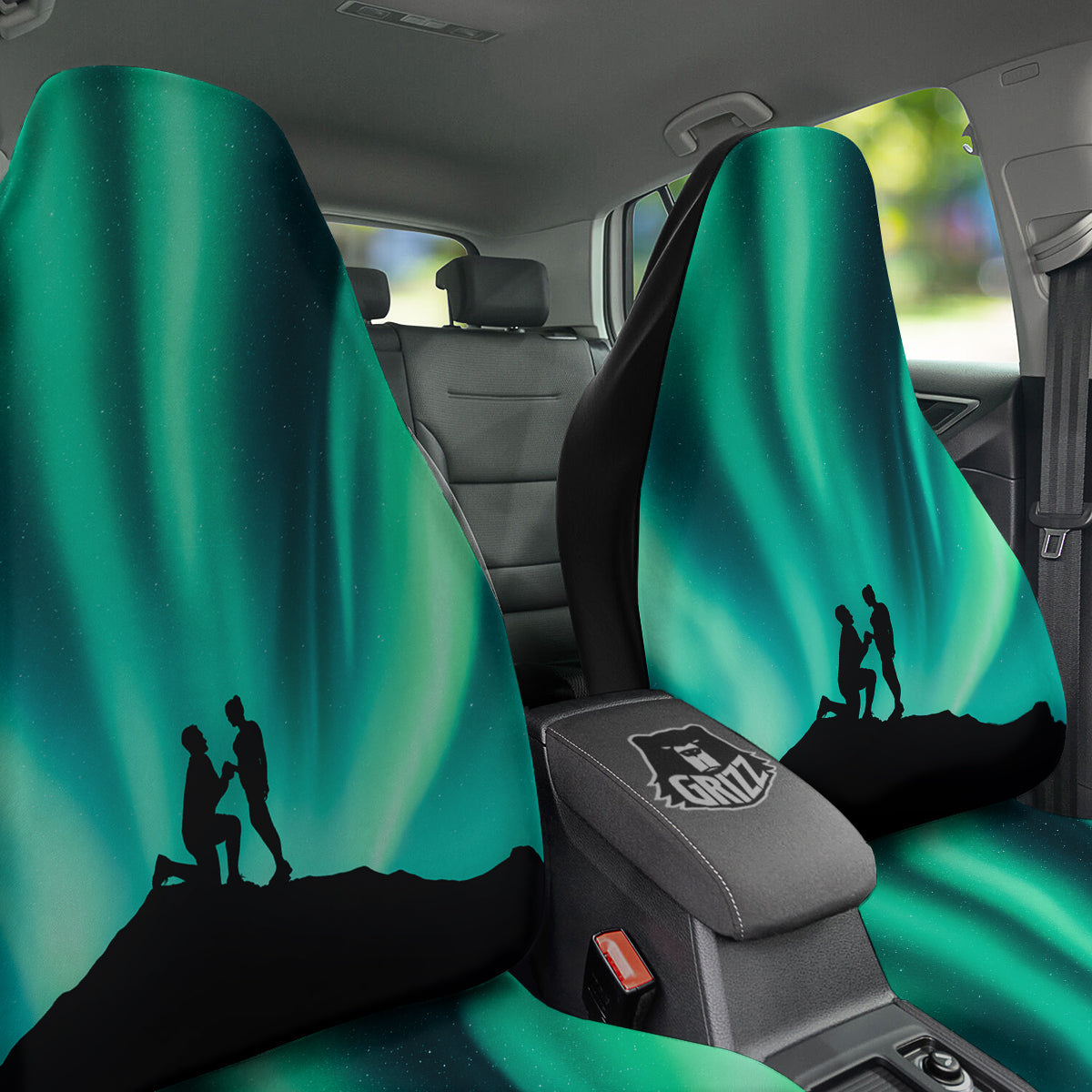 Man Making Marriage With Northern Lights Print Car Seat Covers