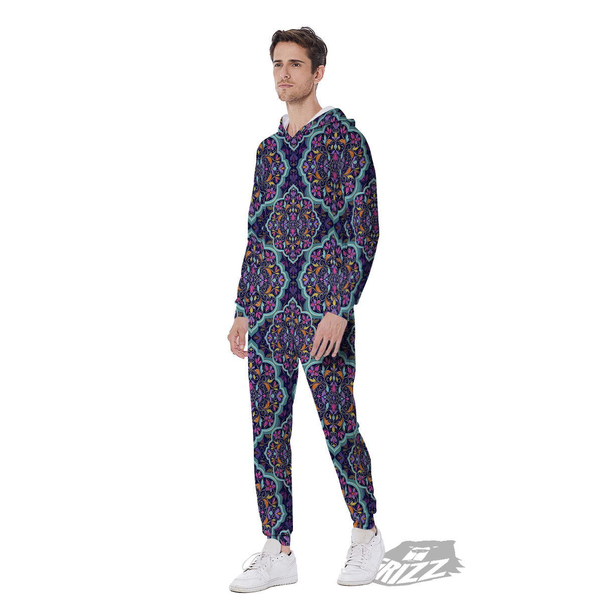 Mandala Bohemian Purple Print Pattern Men's Jumpsuit