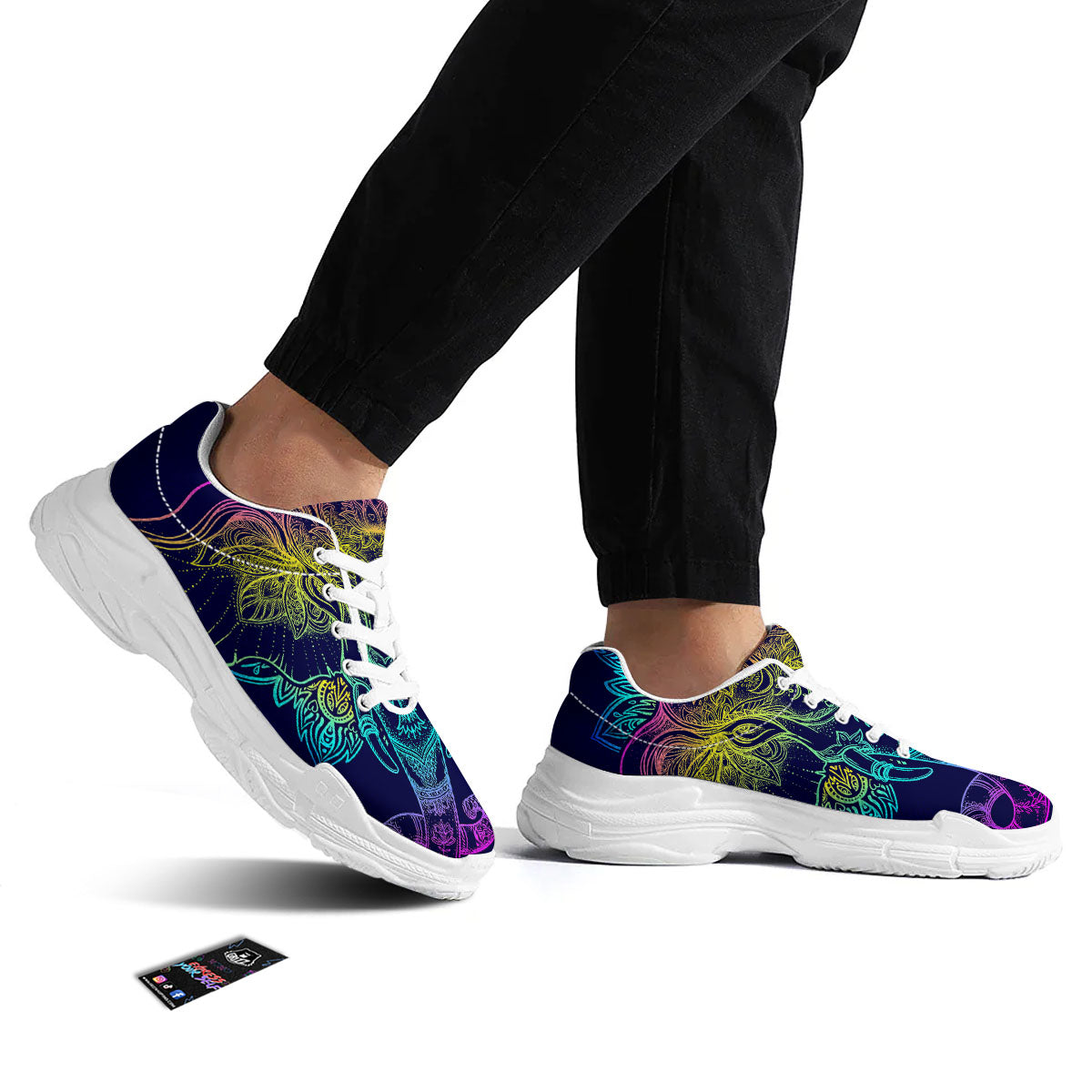 Mandala Spiritual Elephant Print White Chunky Shoes