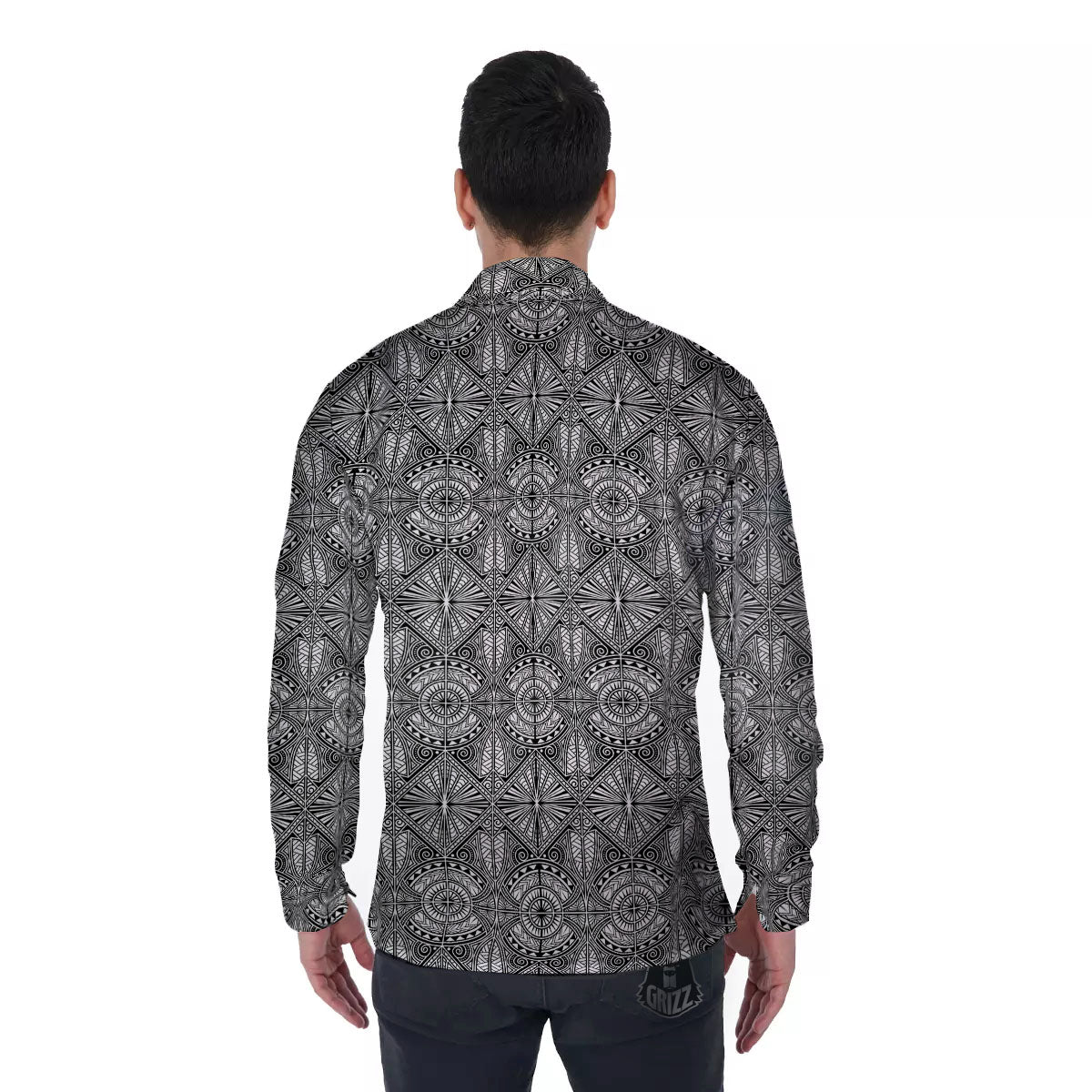 Maori White And Black Print Pattern Men's Long Sleeve Shirts