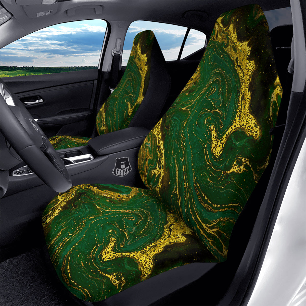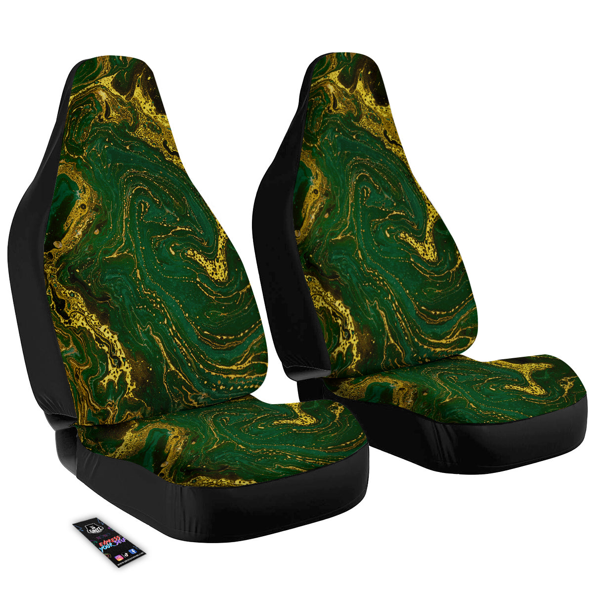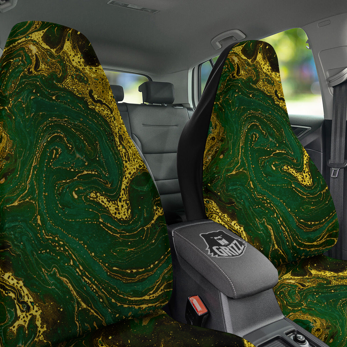 Marble Abstract texture Gold And Dark Green Print Car Seat Covers