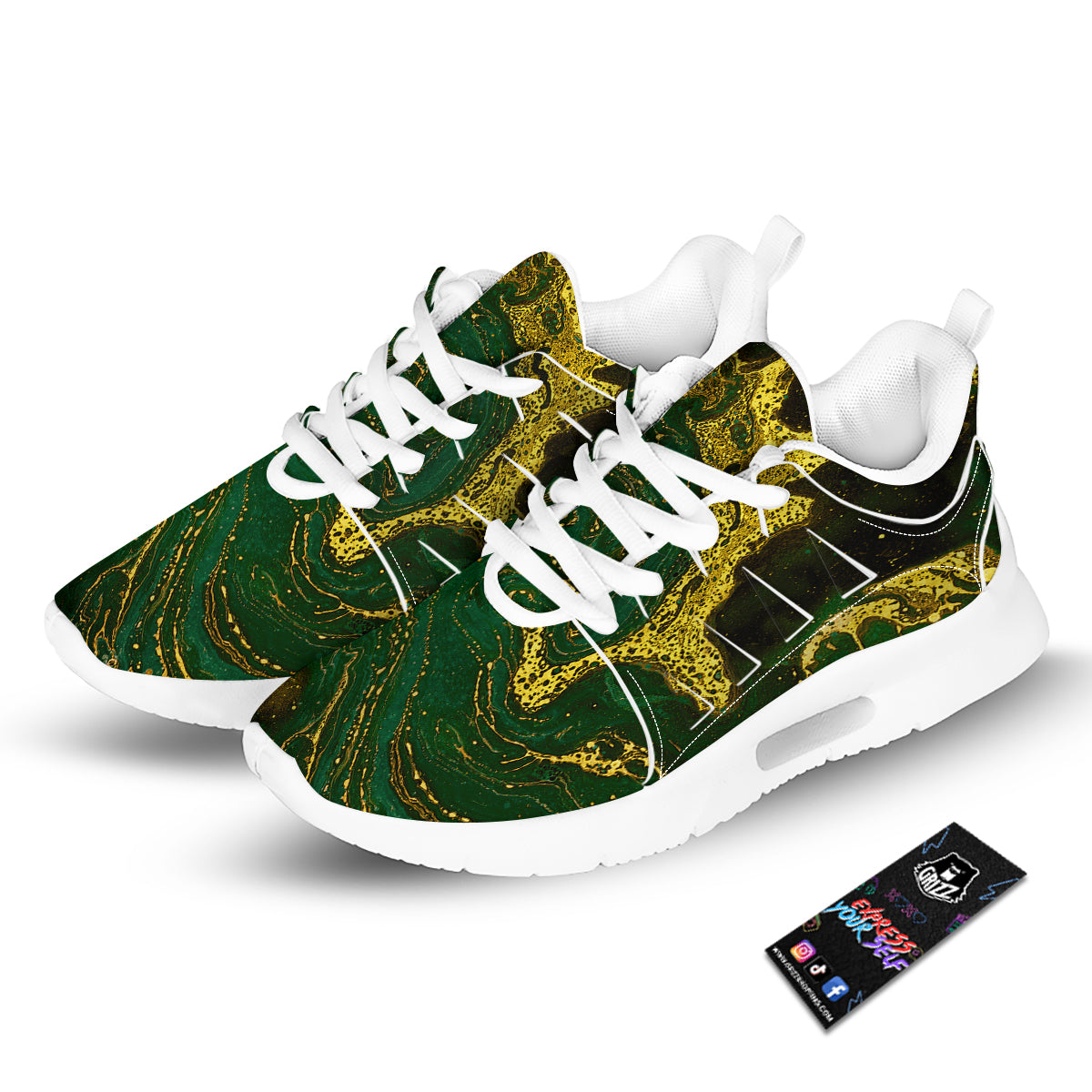 Marble Abstract texture Gold And Dark Green Print Tennis Shoes